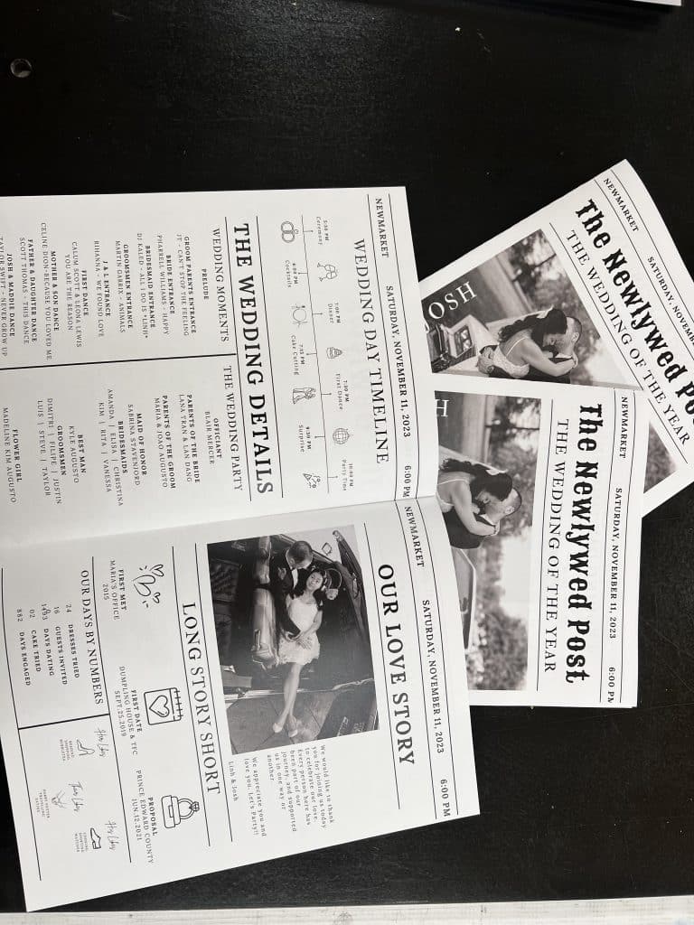 We specialize in premium dance floor wraps with a mandatory protective layer for a flawless, durable finish. From custom-designed wedding invitations, menus, place cards, and stationery on a wide range of papers, to large foamboard seating charts, welcome signs, and full event signage — we offer high-quality printing and design solutions as your one-stop shop for wedding and event printing.
